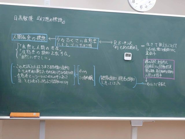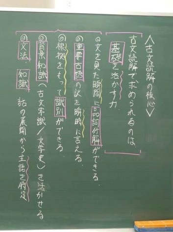 例えば、現代文では毎回、写真のように本文を図解して解説します。