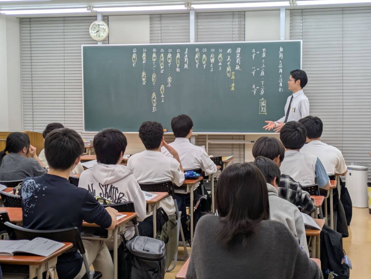 倉敷校の古典の授業では基礎・基本を大事にしています。文法を高1生で習得することで、読解の土台を固めます。
