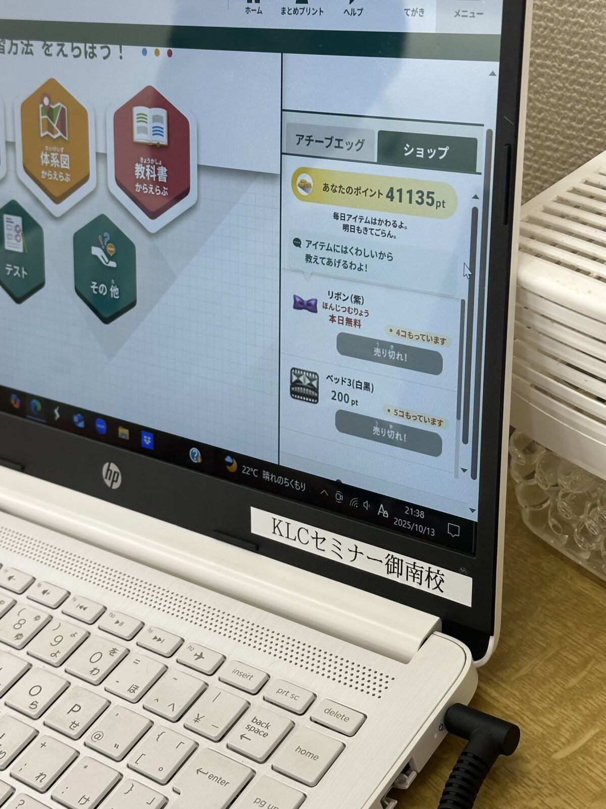 ↑↑家だけでなく時間があるときは御南校でもすららをするKくん