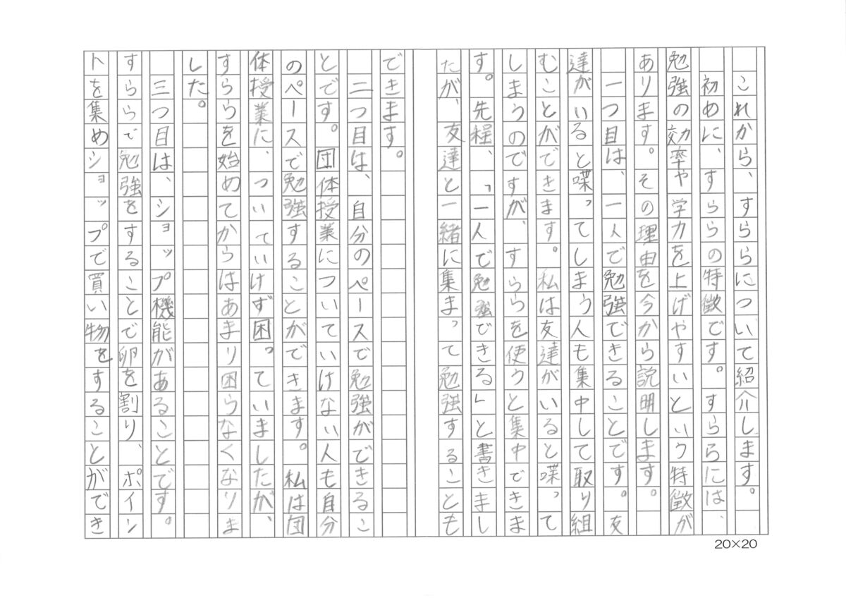 生徒が「すらら」の感想文を書いてくれました!