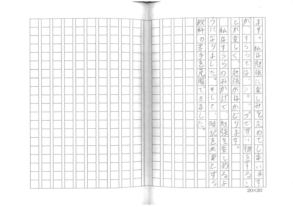 今回はなんと! 作文を書いてくれた生徒がいます。