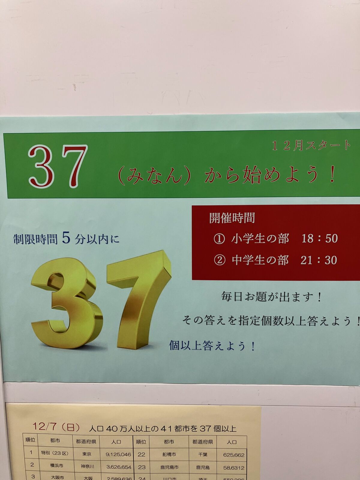 題が与えられて時間内に37(みなん)個以上答えるというもの。