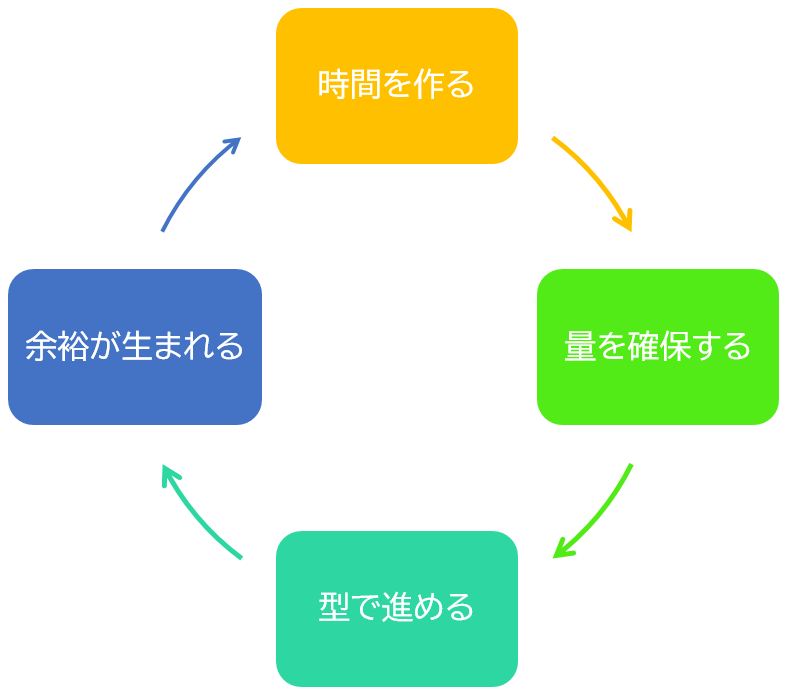 時間をつくる→ 量を確保する→ 型で進める→ 余裕が生まれる