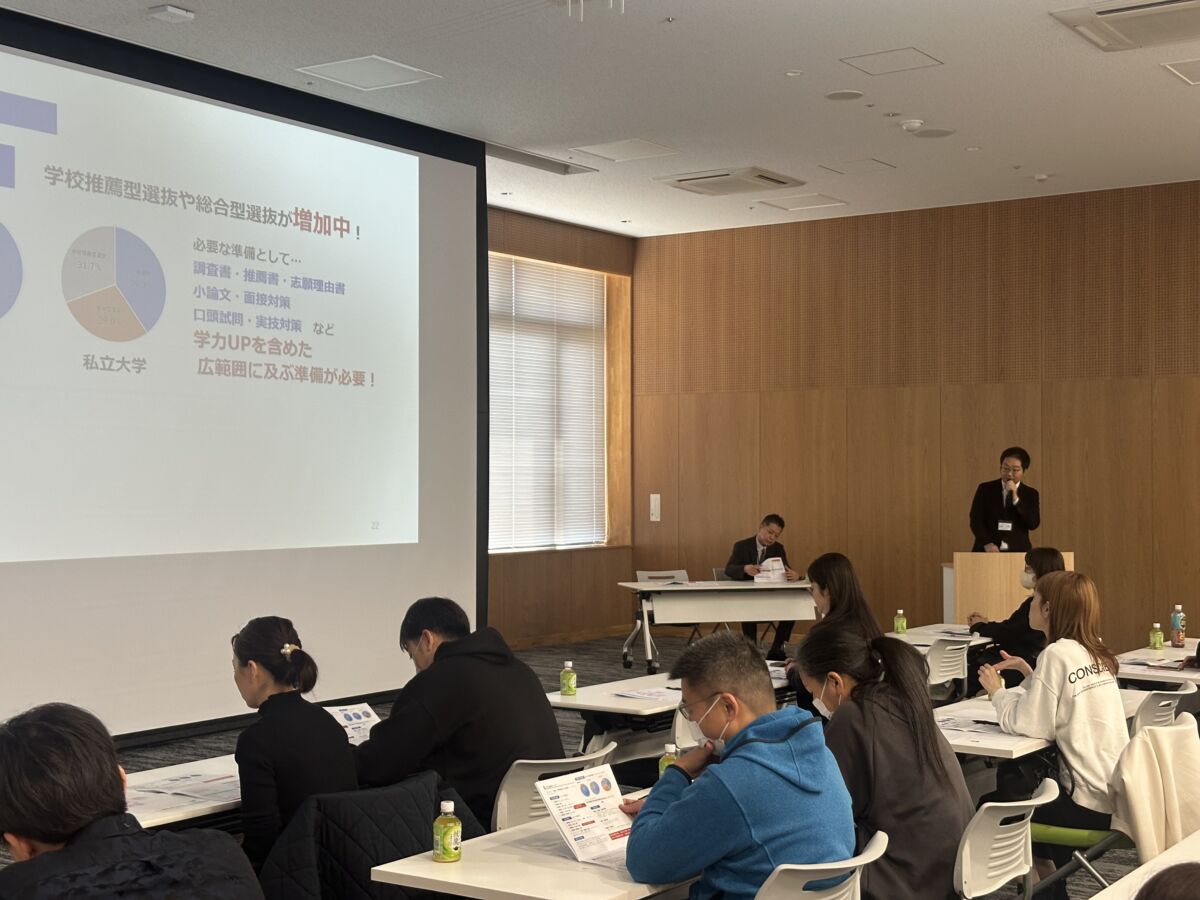 11月24日(祝)に中学1・2年生の保護者様対象の「県立高校入試説明会」を杜の街グレースにて実施いたしました。3連休最終日のお忙しい中、お越しくださいまして誠にありがとうございました。