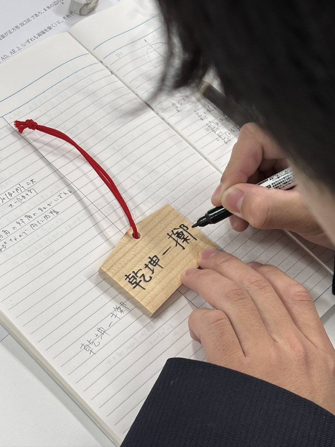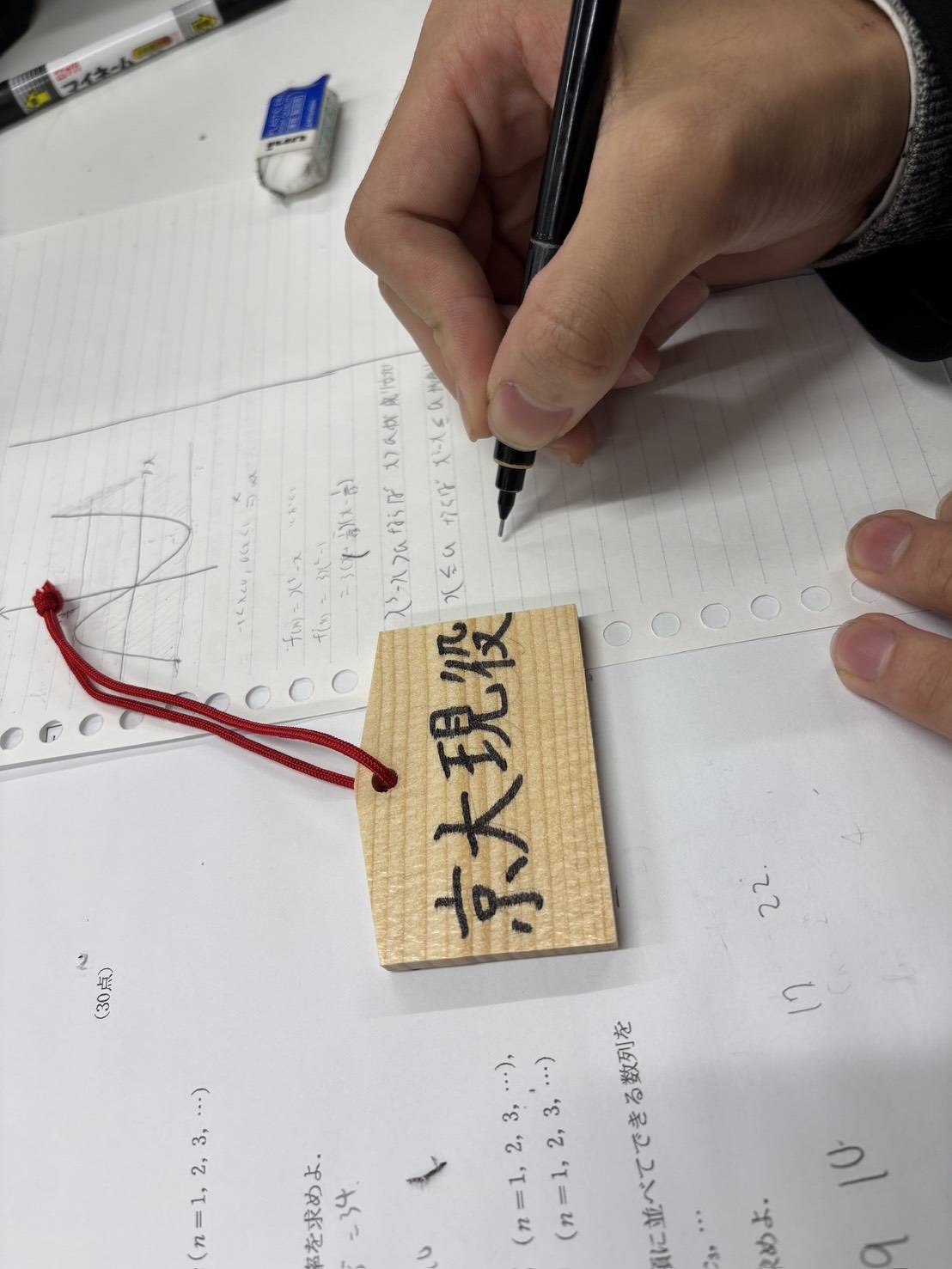 高3S数学の授業で、高校3年生の受験生たちに、受験本番に向けた気持ちを整理する意味も込めて、合格祈願の絵馬を書いてもらいました。
