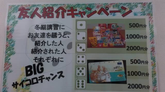 こんにちは。芳泉校移転についての情報です。 この度、移転を記念して冬期講習が安い…