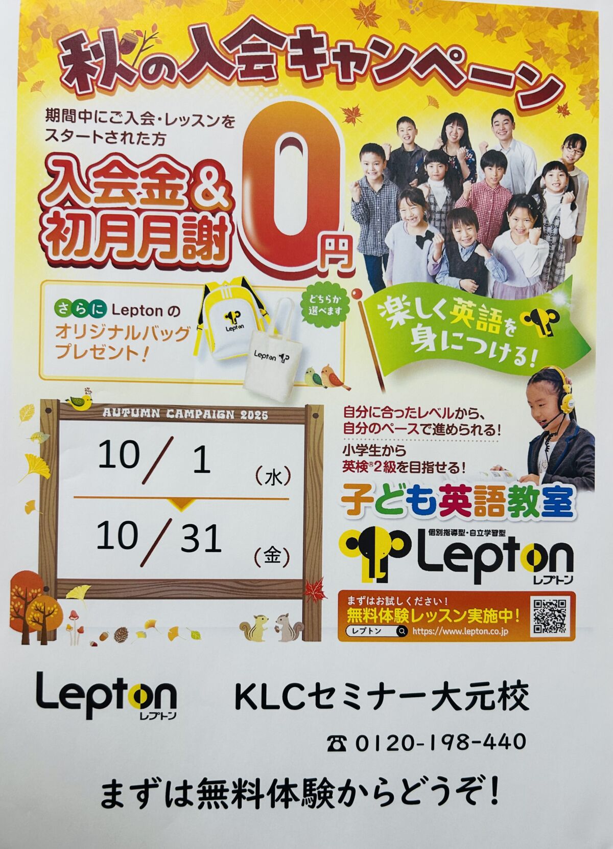 KLCセミナー大元校では10月1日~31日までLepton入会キャンペーンを開催中です!