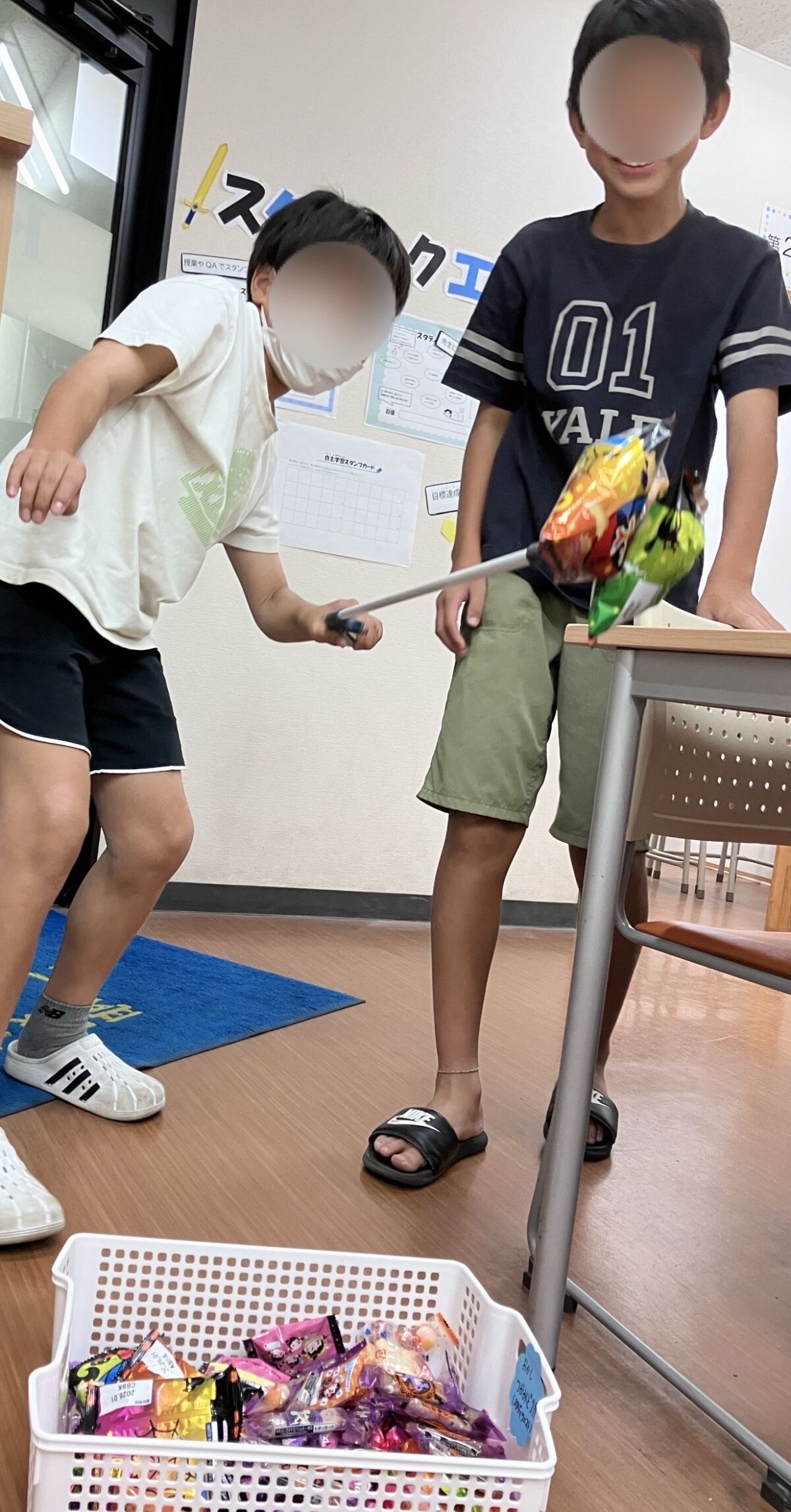 そして、がんばったご褒美の一つ、お菓子のつかみ取り!!