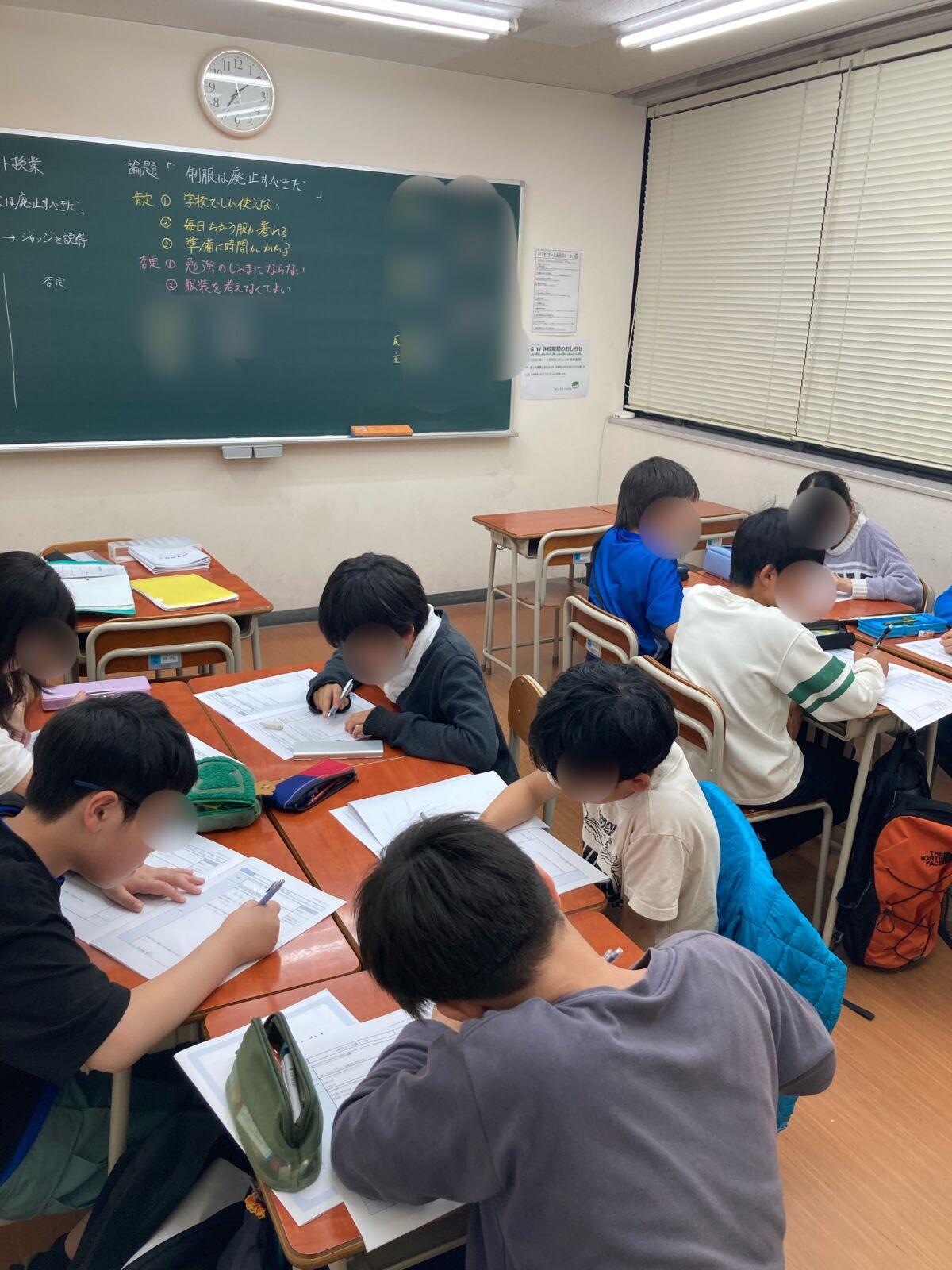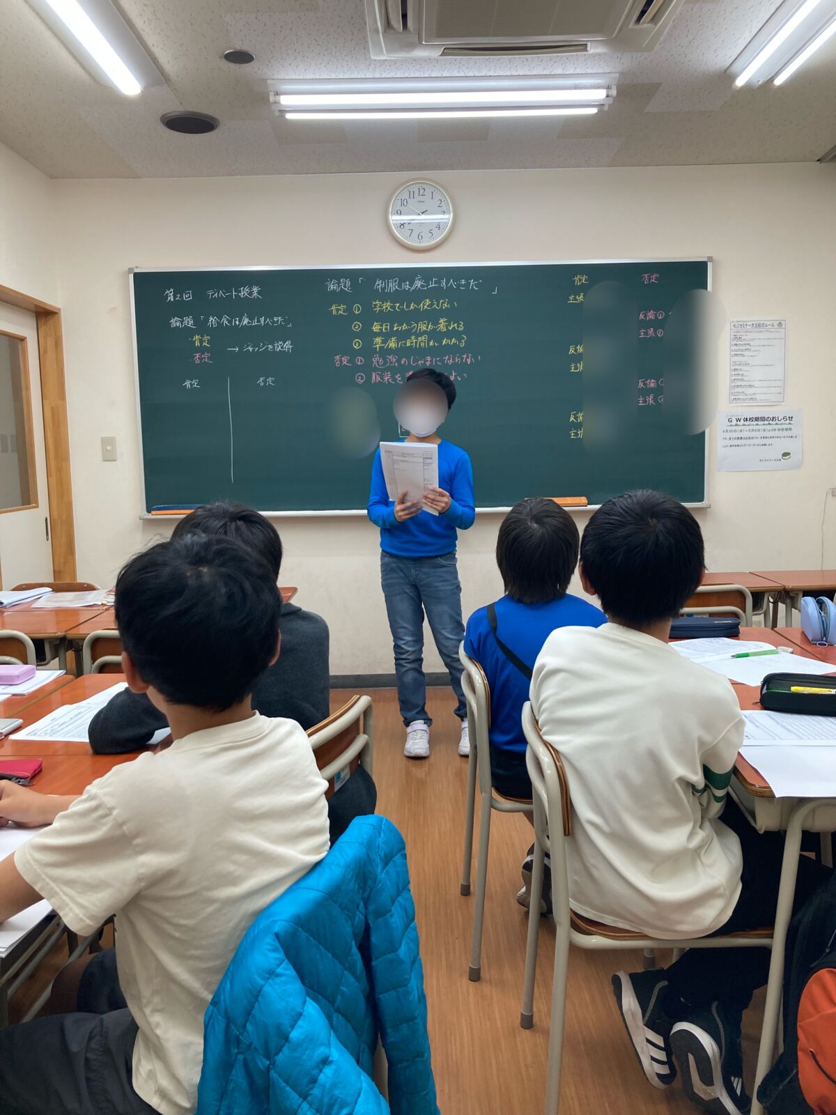KLCセミナー大元校では、中学受験の面接対策として「ディベート授業」を行っています。その第1・2回の授業が行われました。論題に対して肯定派と否定派に分かれて、お互いの主張をしていきます。ジャッジ(先生)が納得する主張を各グループで考えていきます。より具体的に根拠を持って説明できるように・・・、各グループ、一生懸命話し合って考えました。各主張を論理的に述べるためにしっかり準備します。これらは記述力・作文力にもつながっていきます。