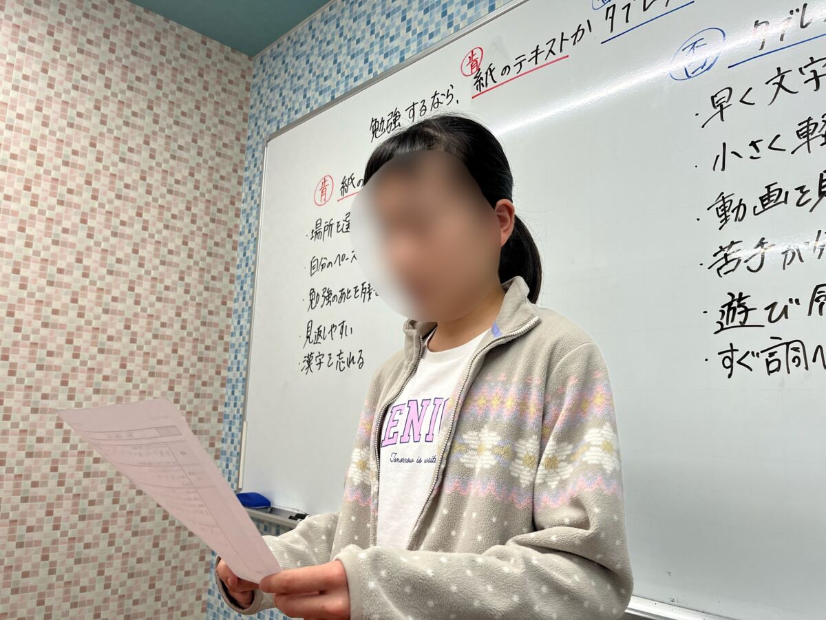 「確かにタブレットは便利だけど、テストでは手で書く練習も必要だと思う」