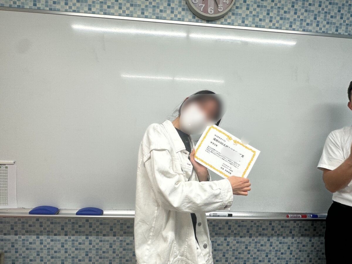 今回のテストでは、連続で5科目400点以上を得点した生徒を表彰しました!