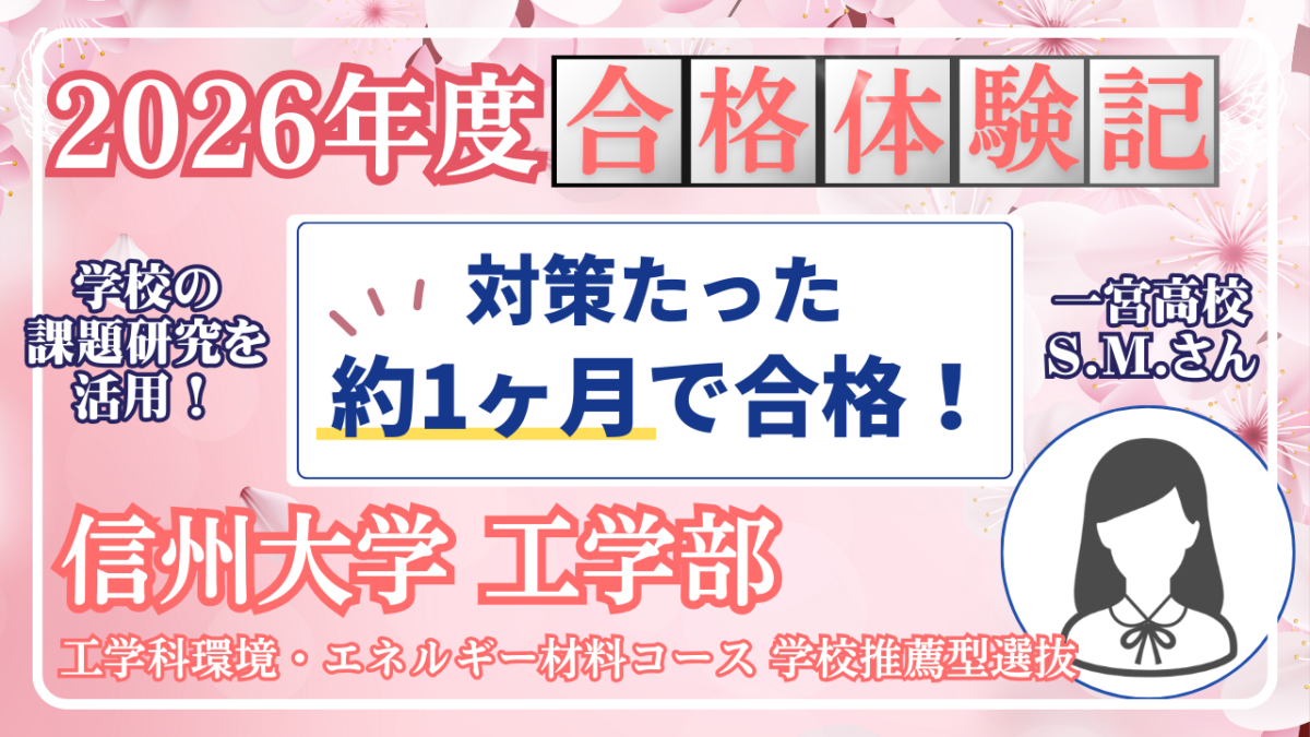 【🌸2026年度合格🌸】一宮高校→ 信州大学工学部 S.Mさん【学校推薦型選抜で国公立大学に合格】